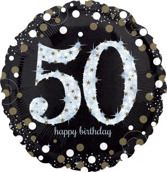 45cm Sparkling Celebration 50th Happy Birthday Round Foil Balloon UNINFLATED